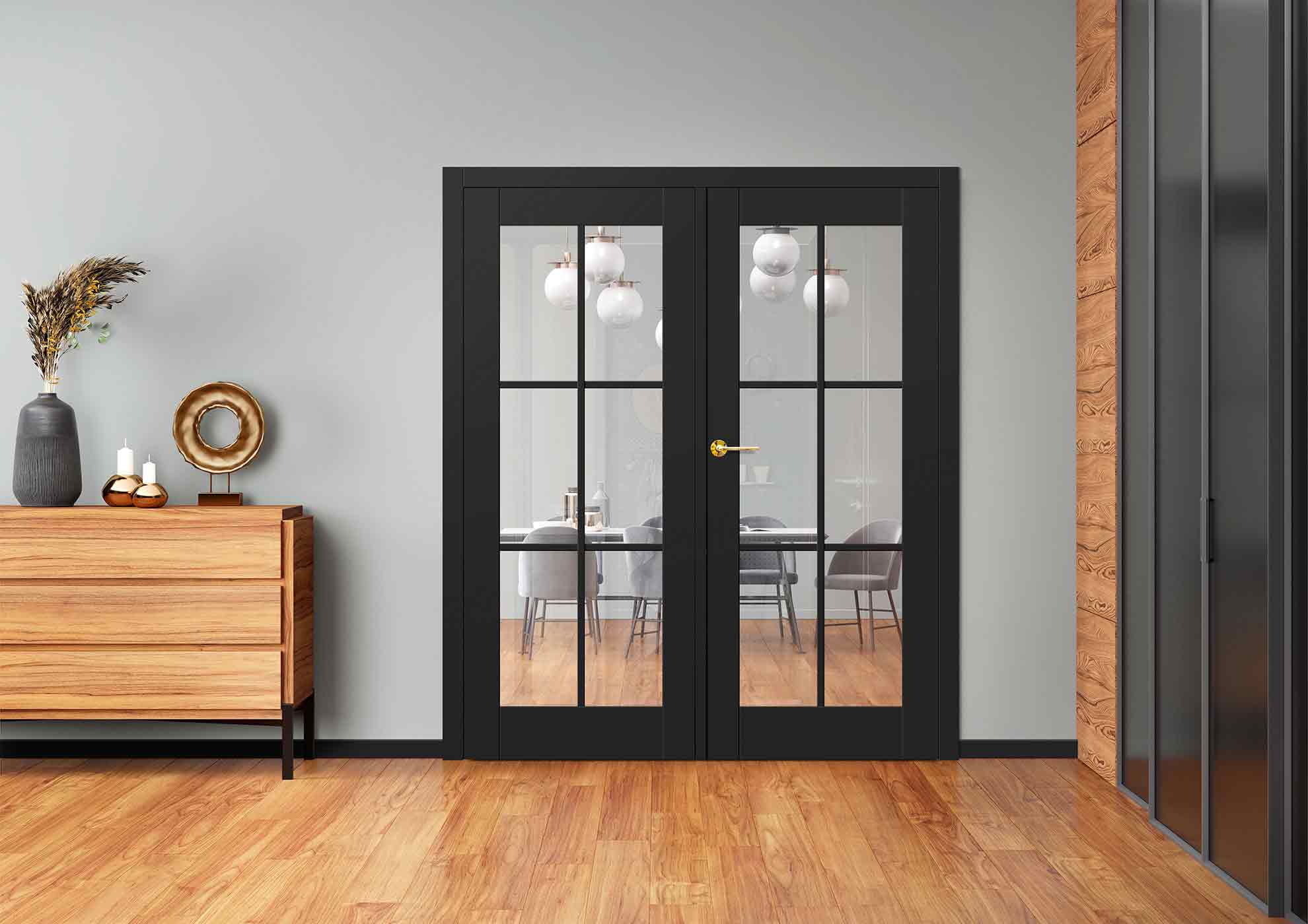 - three concealed hinges in a non-rebated leaf, silver (optionally black - subject to an additional charge); hinges supplied with and included in the price of the door frame