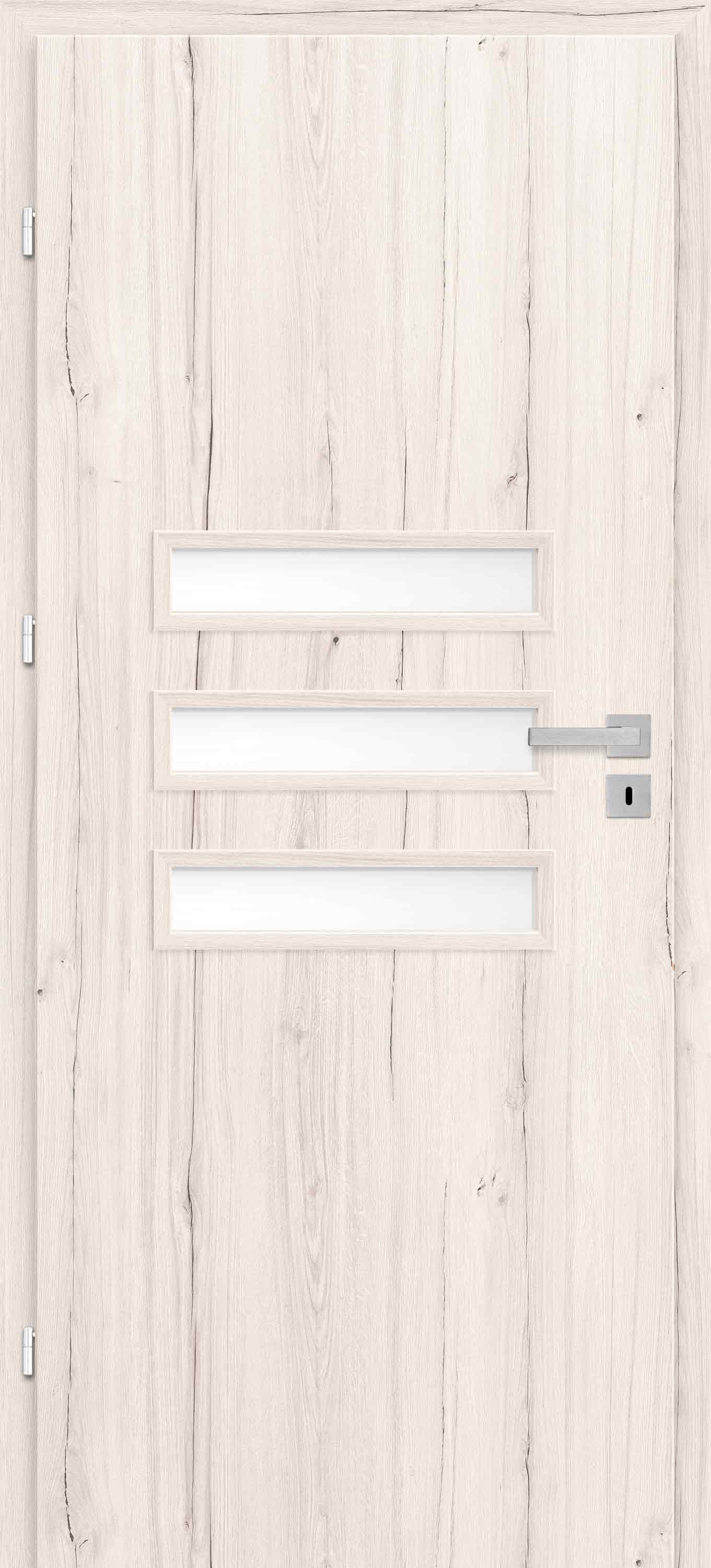 - three concealed hinges in the non-adjacent leaf and two hinges in the reverse leaf in silver (black or golden against an extra charge); hinges are supplied and priced with the door frame