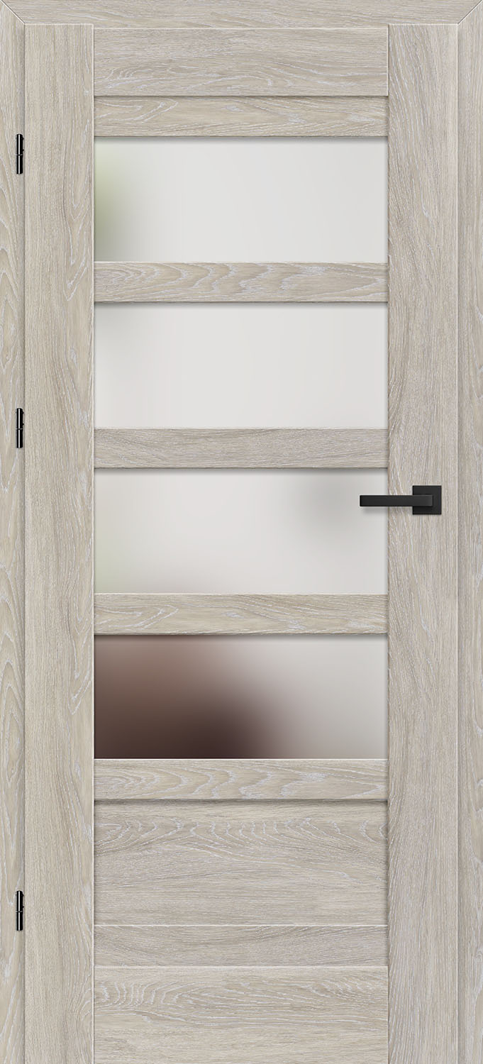 - three concealed hinges in a non-rebated leaf, silver (optionally black - subject to an additional charge); hinges supplied with and included in the price of the door frame