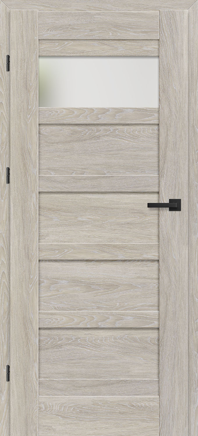 - three concealed hinges in a non-rebated leaf, silver (optionally black - subject to an additional charge); hinges supplied with and included in the price of the door frame