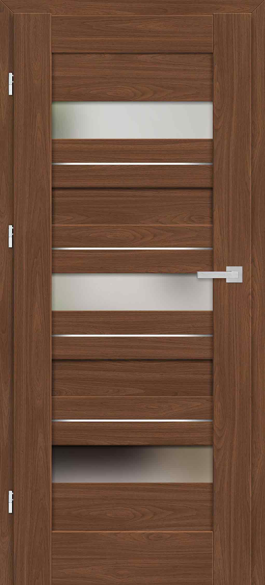 - three concealed hinges in a non-rebated leaf, silver (optionally black - subject to an additional charge); hinges supplied with and included in the price of the door frame