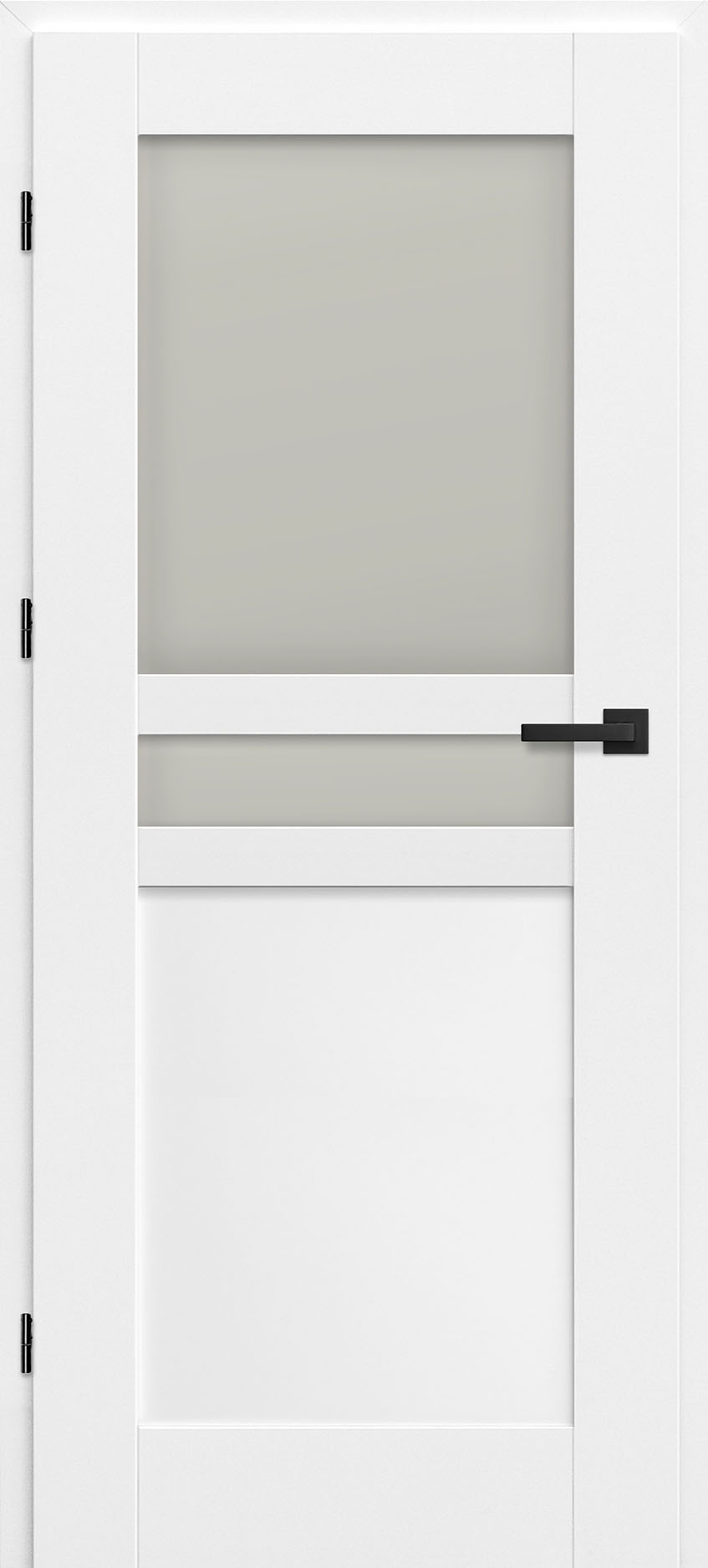 - three concealed hinges in a non-rebated leaf, silver (optionally black - subject to an additional charge); hinges supplied with and included in the price of the door frame