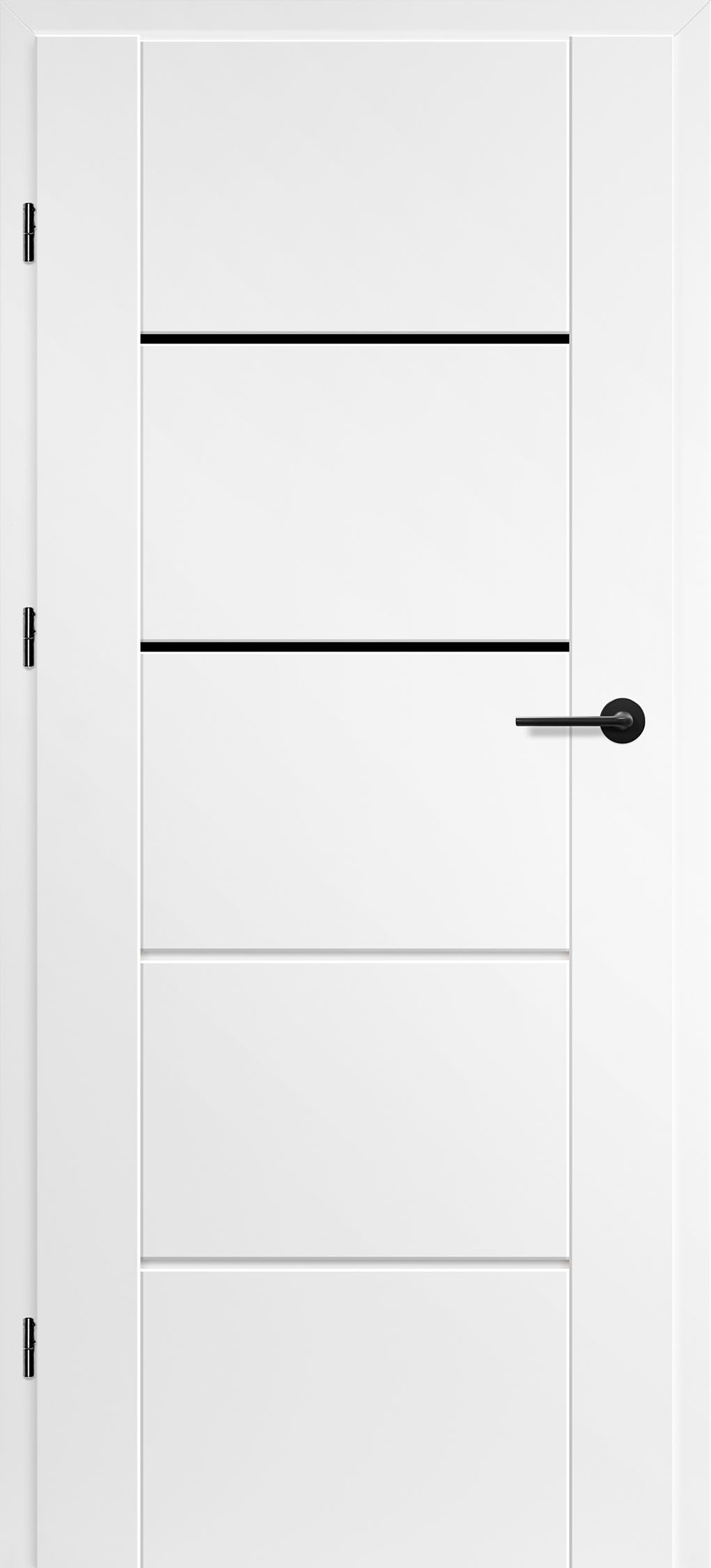 - three concealed hinges in a non-rebated leaf, silver (optionally black - subject to an additional charge); hinges supplied with and included in the price of the door frame
