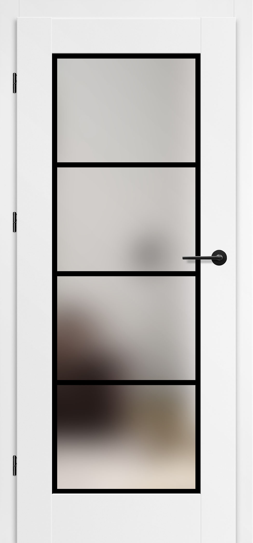 • three concealed hinges in the non-adjacent leaf and two hinges in the reverse leaf in silver (black against an extra charge); hinges are supplied and priced with the door frame