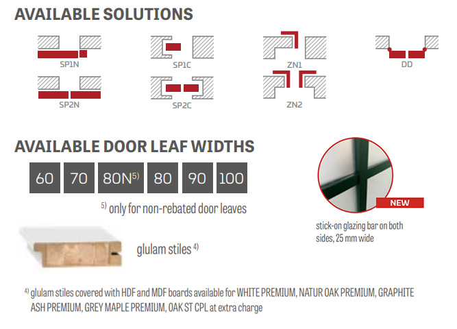(4) Glulam stiles covered with HDF and MDF boards available for WHITE PREMIUM, NATUR OAK PREMIUM, GRAPHITE ASH PREMIUM, GREY MAPLE PREMIUM, OAK ST CPL at extra charge