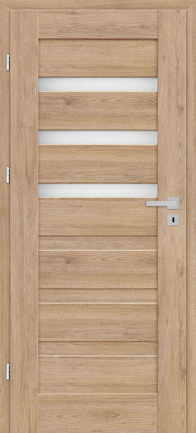 - three concealed hinges in a non-rebated leaf, silver (optionally black - subject to an additional charge); hinges supplied with and included in the price of the door frame