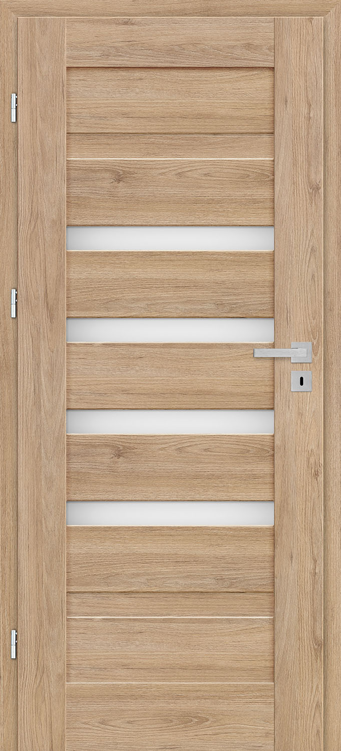 - three concealed hinges in a non-rebated leaf, silver (optionally black - subject to an additional charge); hinges supplied with and included in the price of the door frame