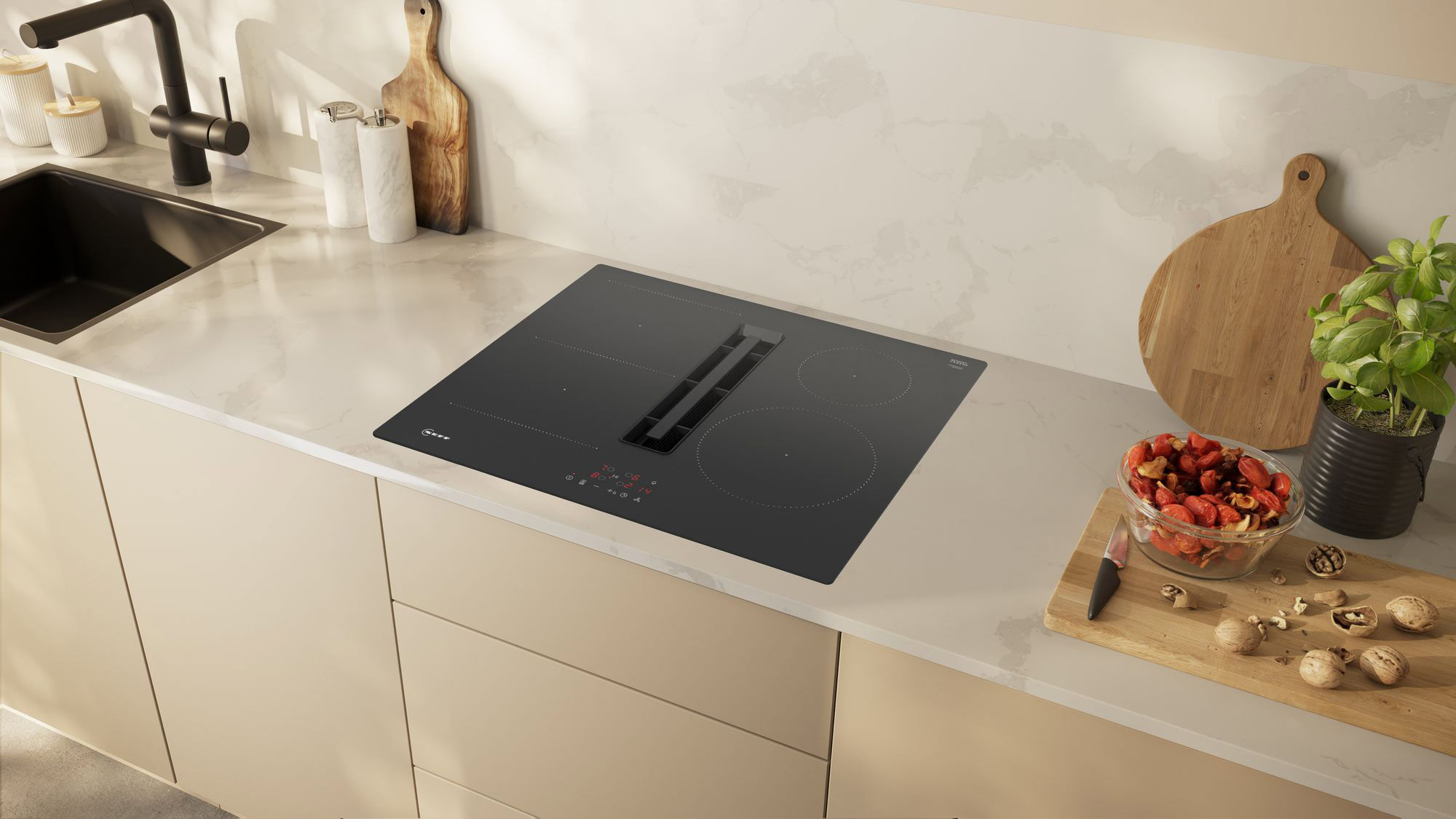 An induction hob with integrated ventilation from Neff combines two appliances in one!