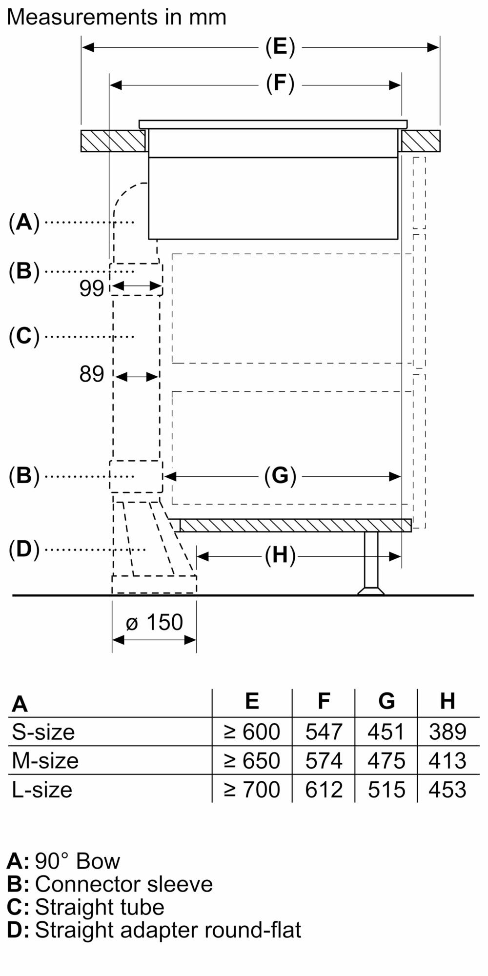 - Min width for installation: 750 mm