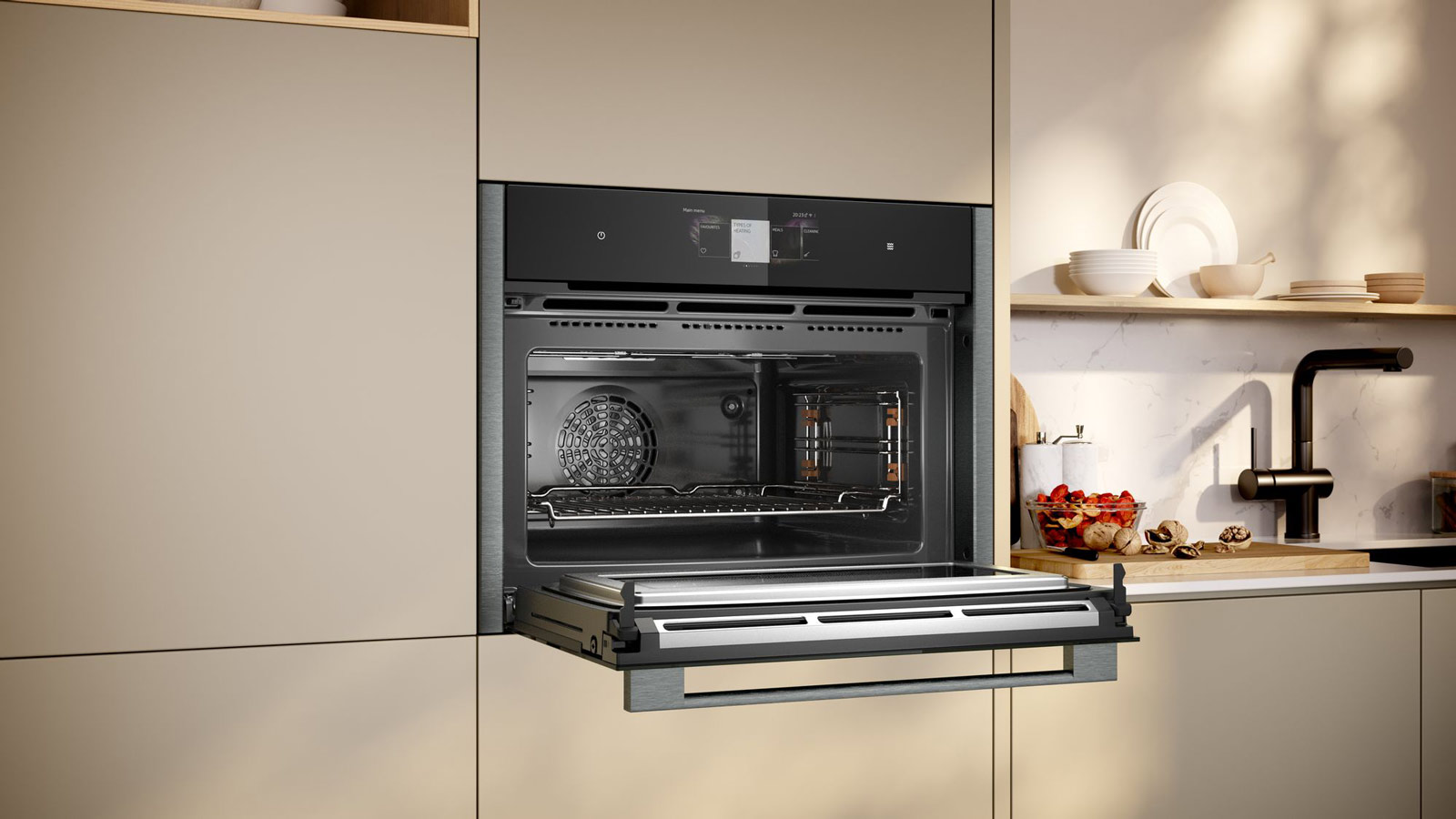 Stylish built-in oven with microwave from Neff! Cook quickly and conveniently in a very small space with your combi microwave.