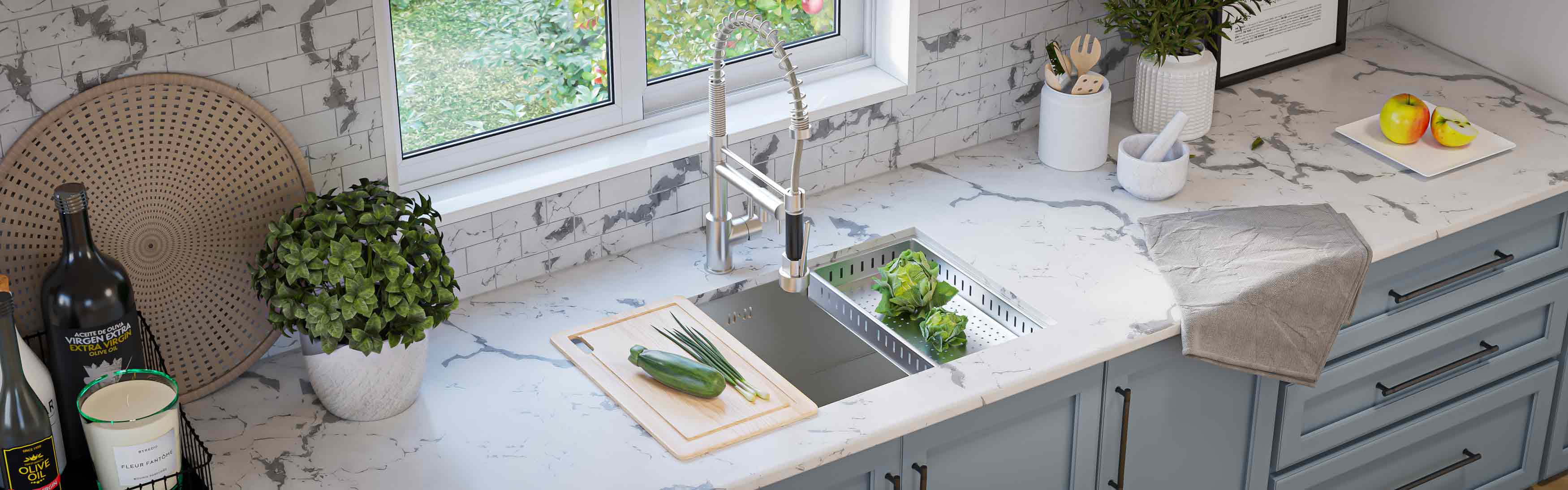 The LEO is taking the lead in professional and smart choices when it comes to kitchen sinks. Save on counter space by utilising the accessories for food prep and storage.
