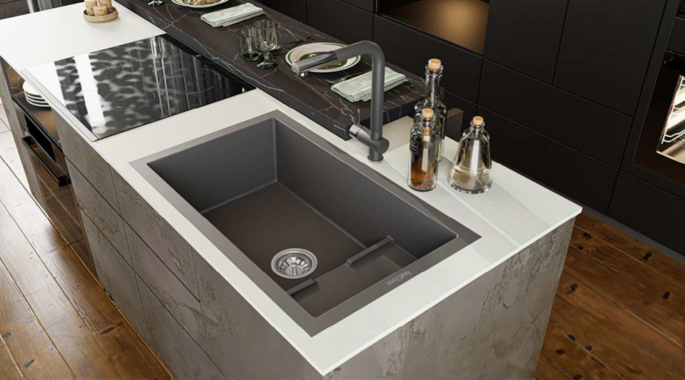 The Composite Granite Anthracite Undermount Prep Sink brings a bold, sophisticated statement to your kitchen, combining style with exceptional durability.