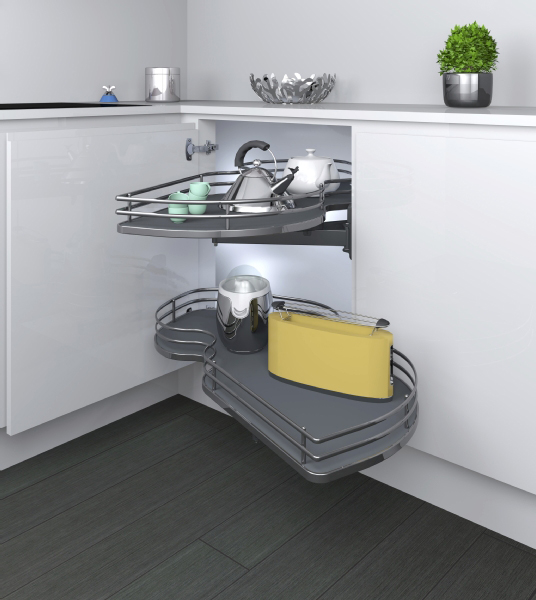 Transform your kitchen storage with our Pivot Moving Kitchen Kidney Corner Unit. Designed with functionality and convenience, this unit features a solid anthracite base that seamlessly integrates into your kitchen decor.