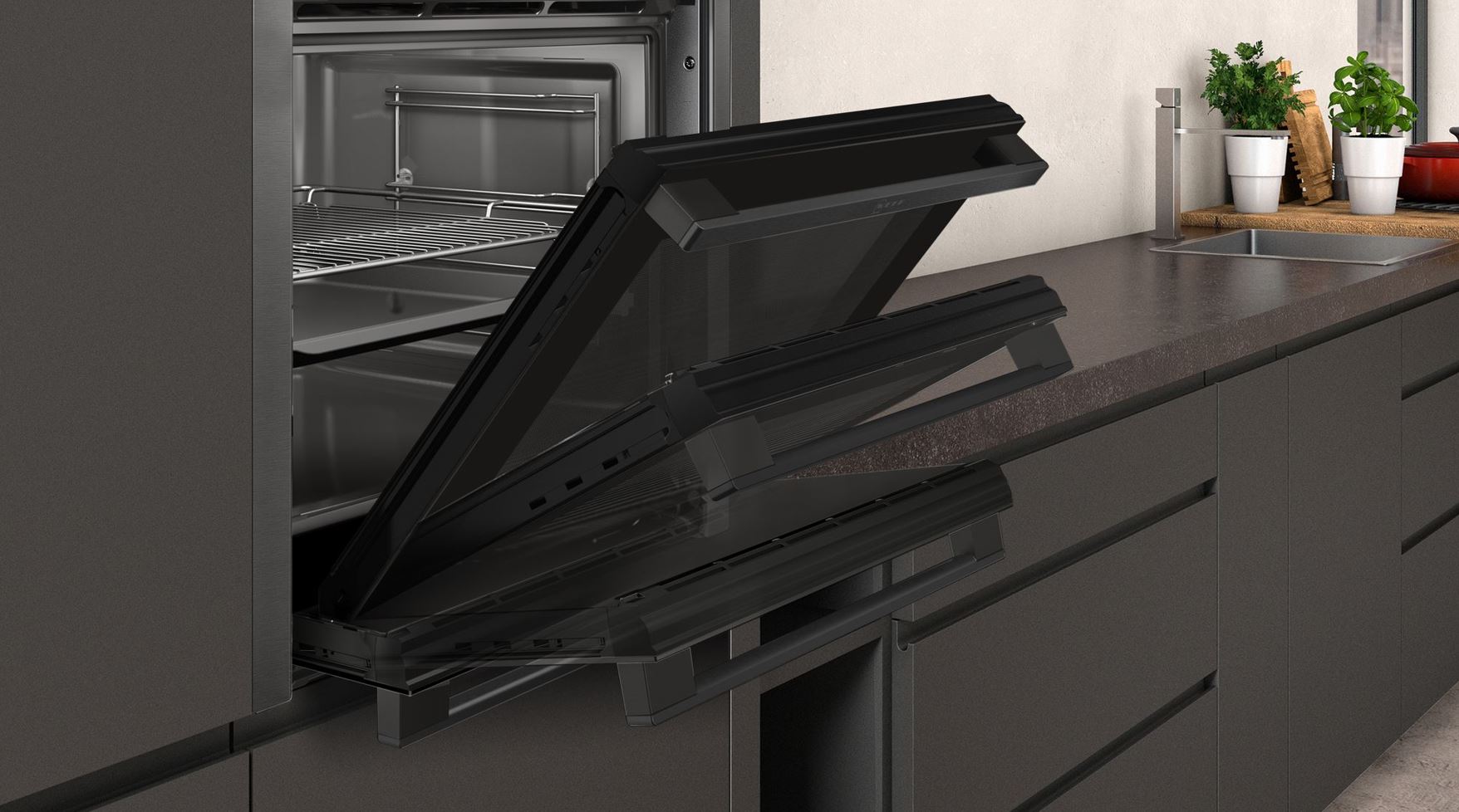 - Slide&Hide® – The fully retracting oven door